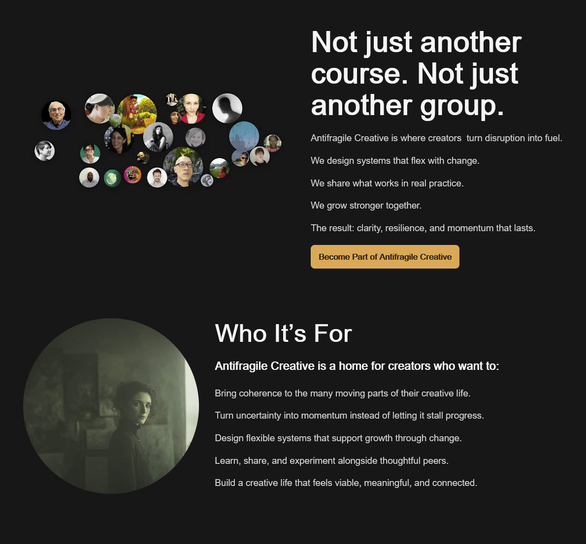 If you want support and shared momentum as you design systems that grow with you, join us in Antifragile Creative.